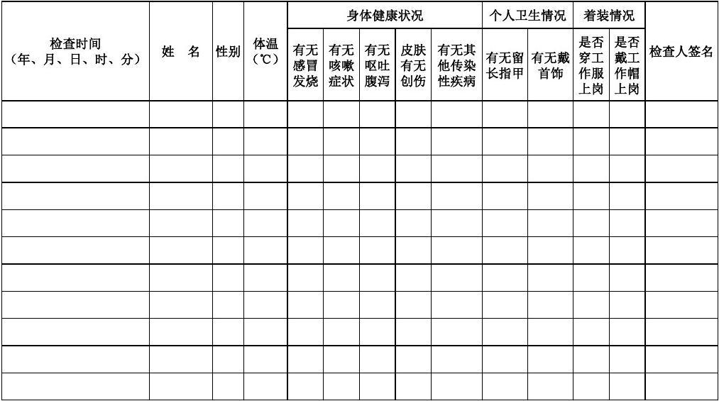 食堂從業人員每日晨檢表