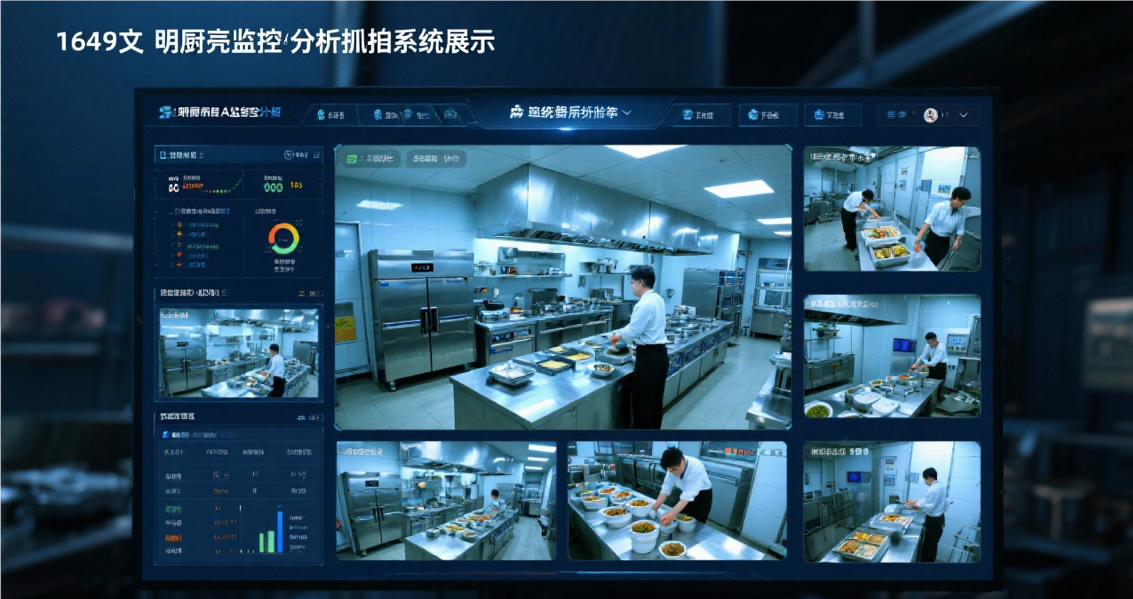 ? ?實時監控?:支持16:9高清視頻流,覆蓋后廚關鍵區域(如烹飪區、洗消區、備餐區等)。